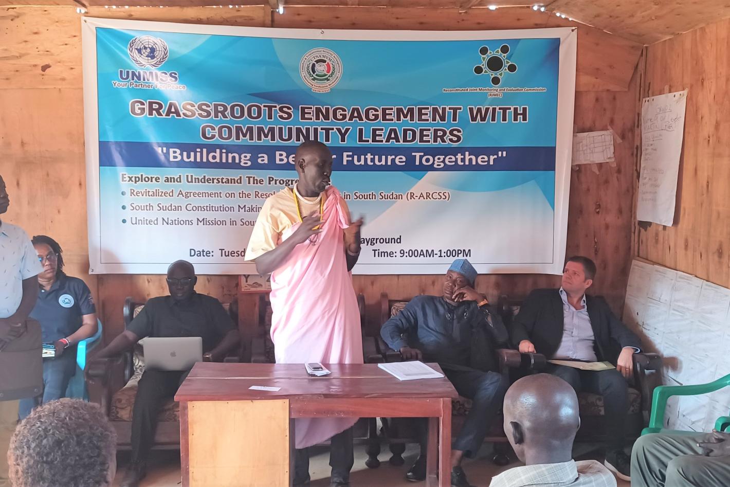 Progressing the peace agreement and participating in South Sudan’s first democratic elections was the hot topic among participants at an UNMISS-hosted grassroots event in the Guri South area, a suburb of Juba. Photo by James Ohisa/UNMISS.