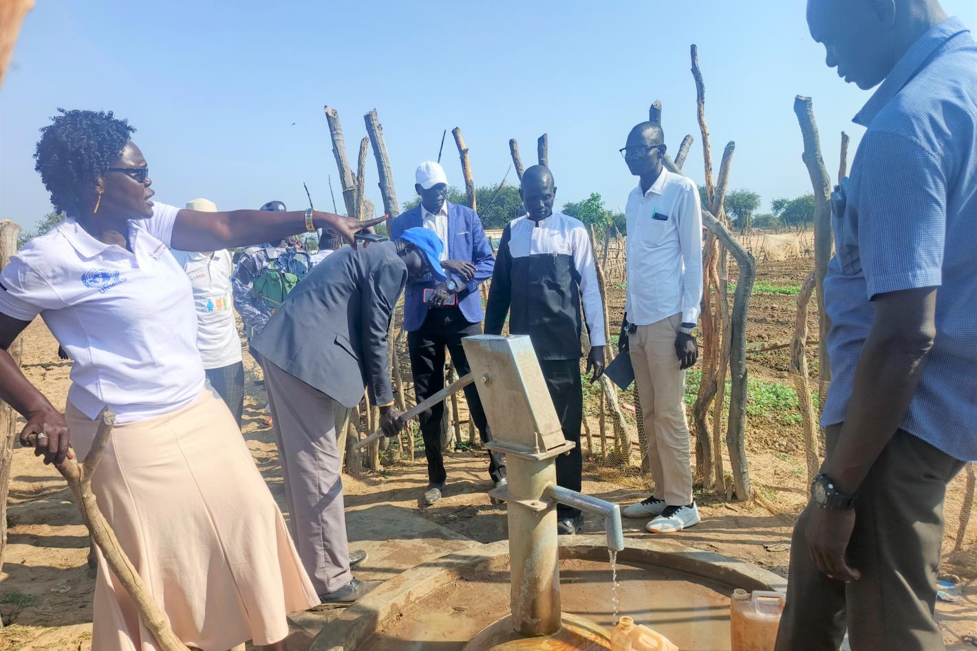 Community leaders and residents in Twic, Warrap, celebrate the handover of three newly installed boreholes, providing much-needed access to clean water. Photo by Peter Ring Ariik Kuol/UNMISS.